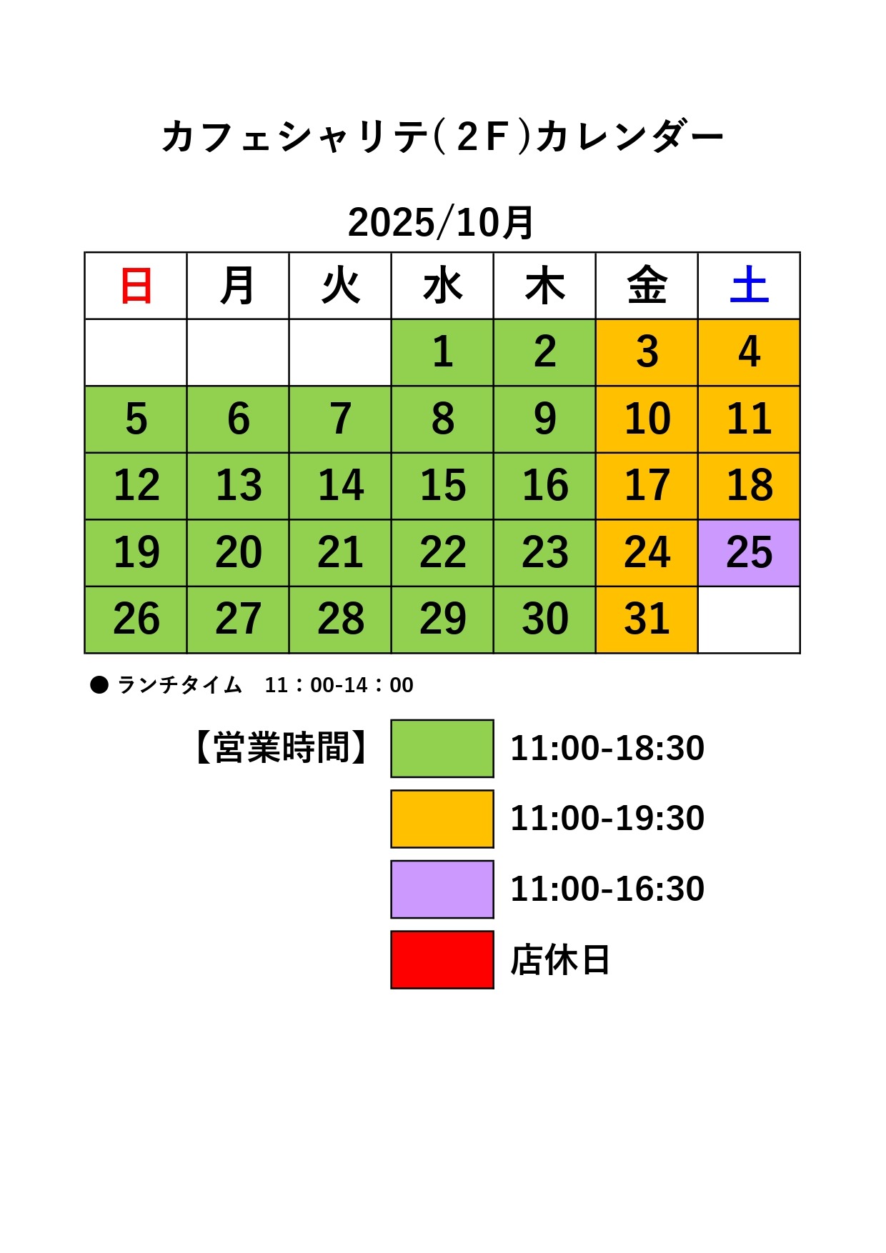 営業時間:11:00 - 17:00(ランチタイム 11:00 - 14:00)※変動あり、詳細はカレンダーをご確認下さい。